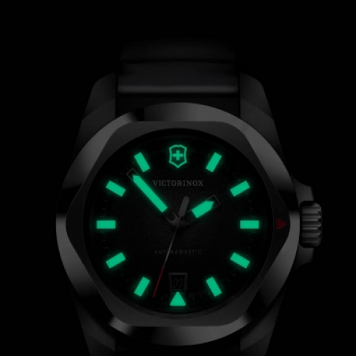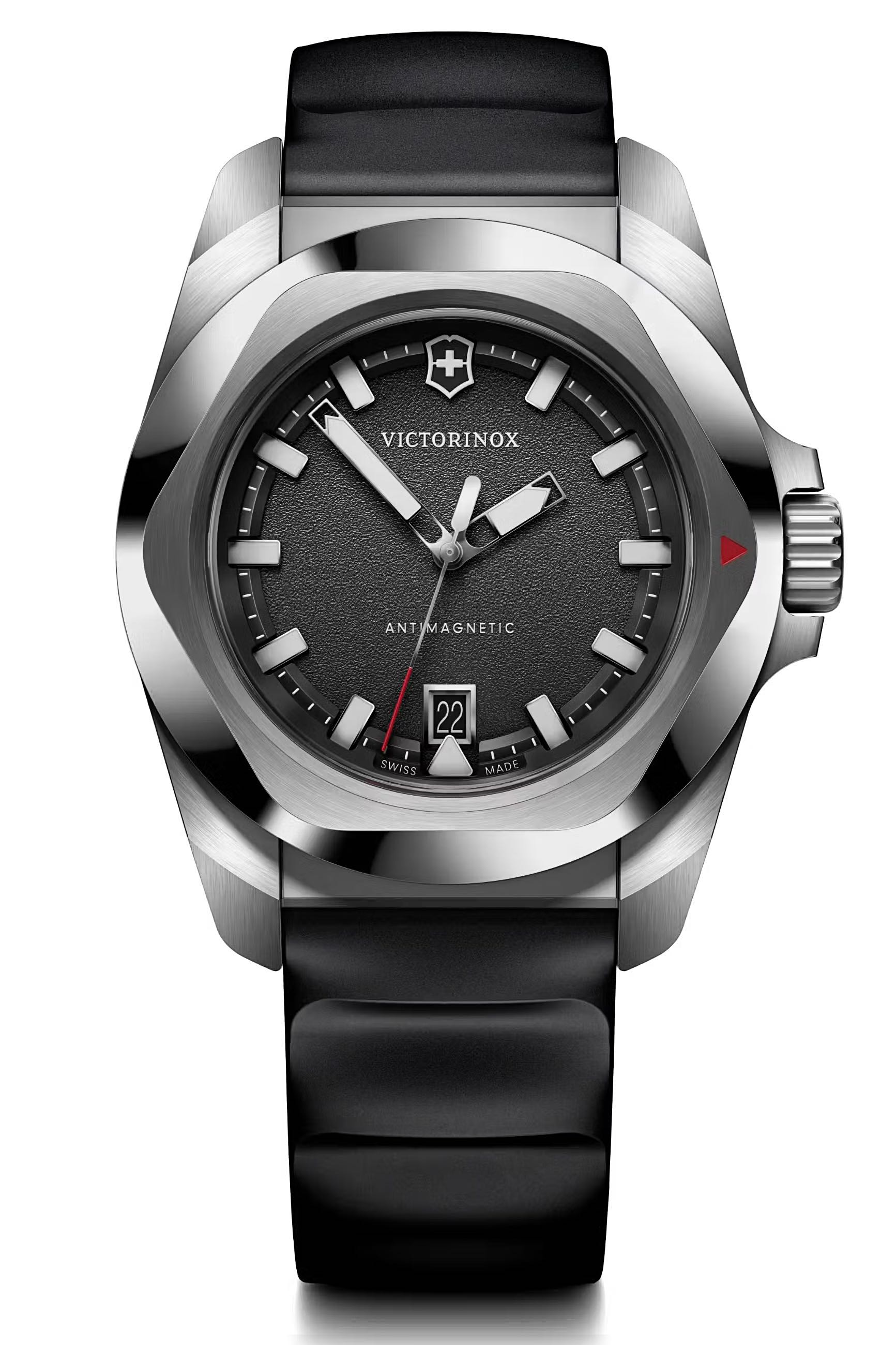 Eine Uhr, die das Erbe des originalen Schweizer Taschenmessers verkörpert und es mit einer einzigartigen Design-DNA für die Zukunft neu erfindet. Die in der Schweiz entwickelte und hergestellte I.N.O.X. QuartzQuartz vereint Präzision mit Alltagstauglichkeit. Sie verfügt über ein mattes Zifferblatt mit erhabenen Indexen und Leuchtzeigern für gute Lesbarkeit bei Tag und Nacht sowie eine Datumsanzeige bei 6 Uhr. Eine gebürstete und polierte Lünette mit Kratzschutz verleiht der Uhr Eleganz, das austauschbare Kautschukarmband sorgt für vielseitigen Tragekomfort.